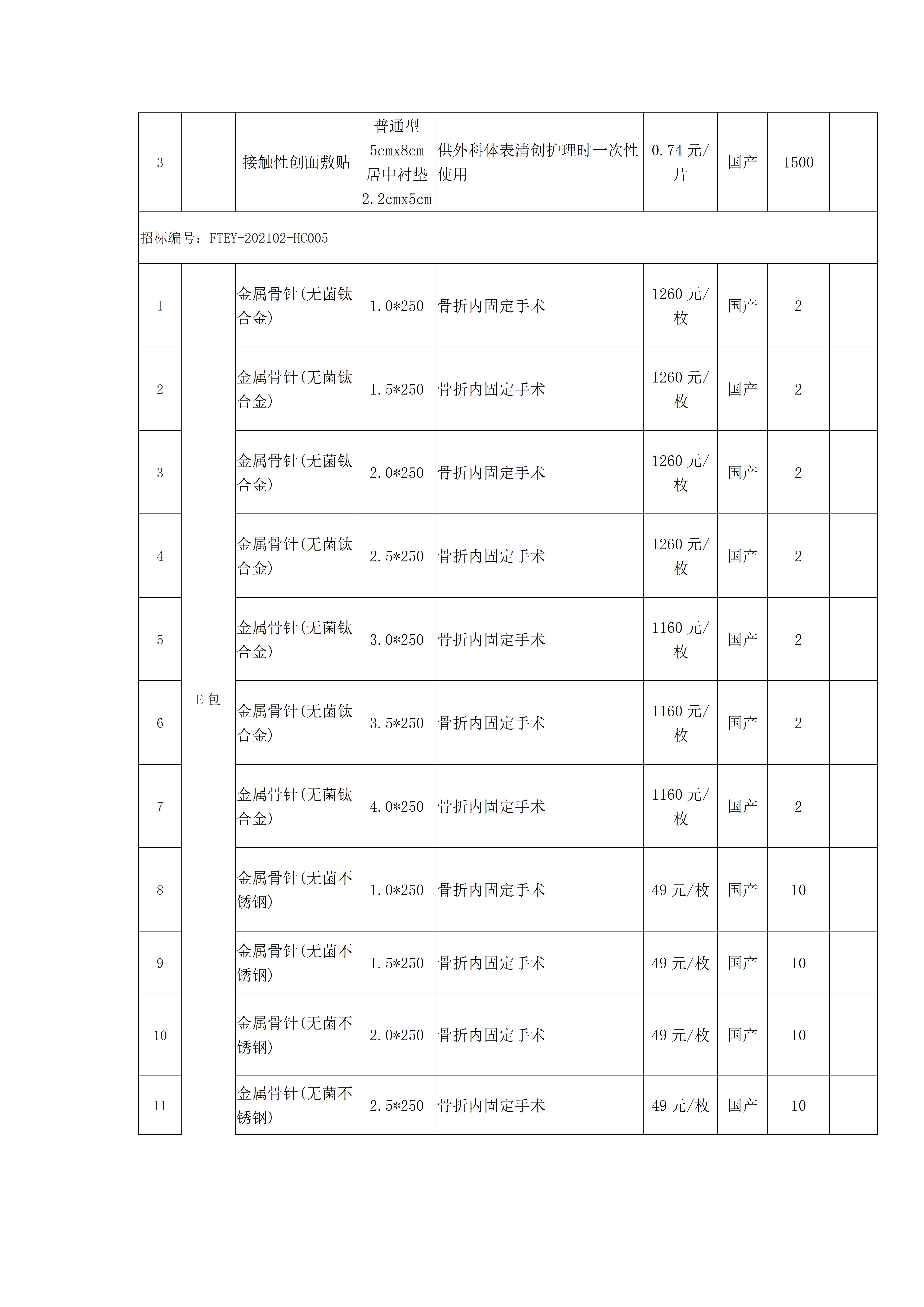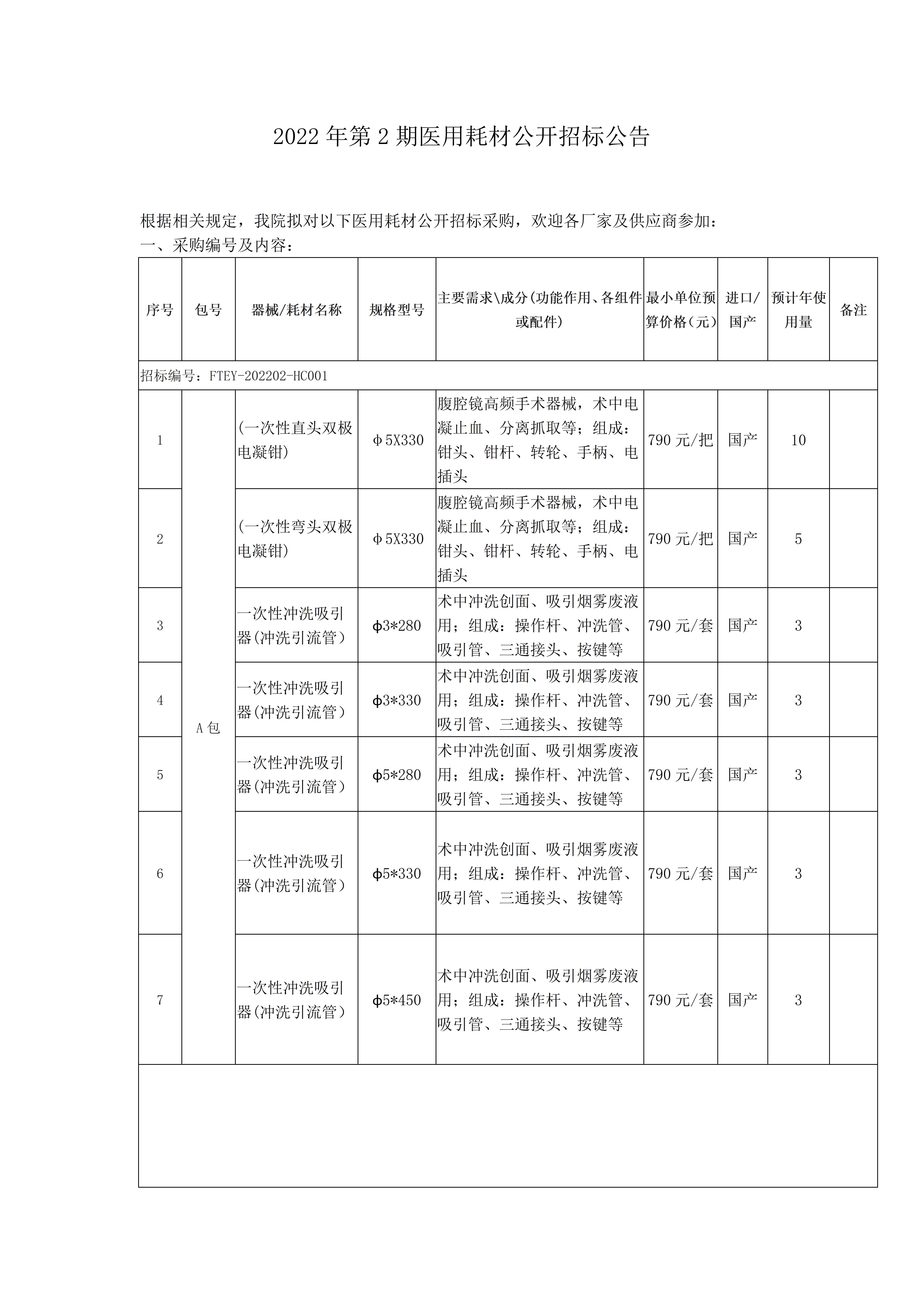 2022年第2期医用院内公开招标公告