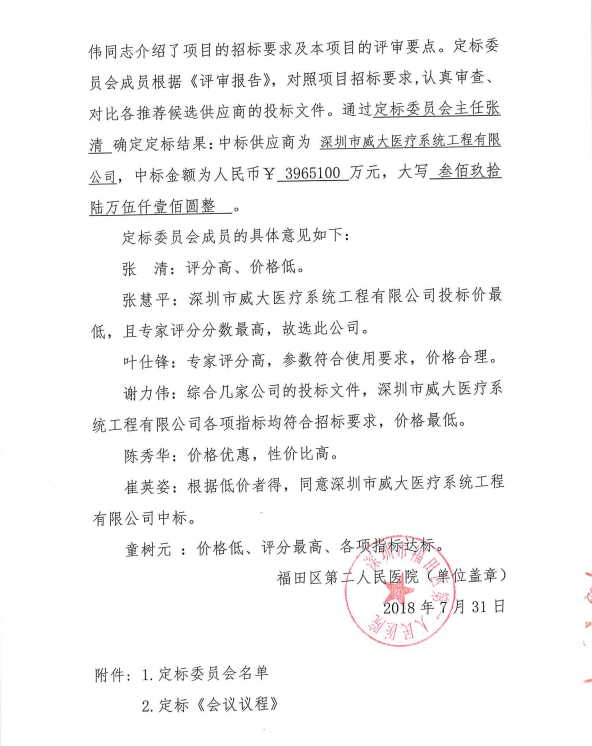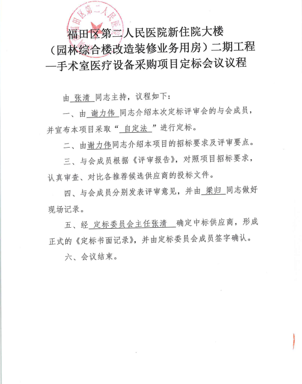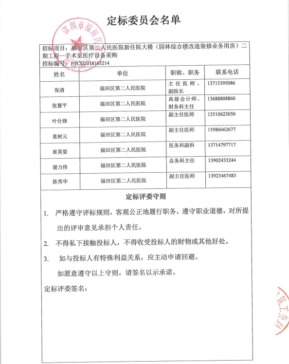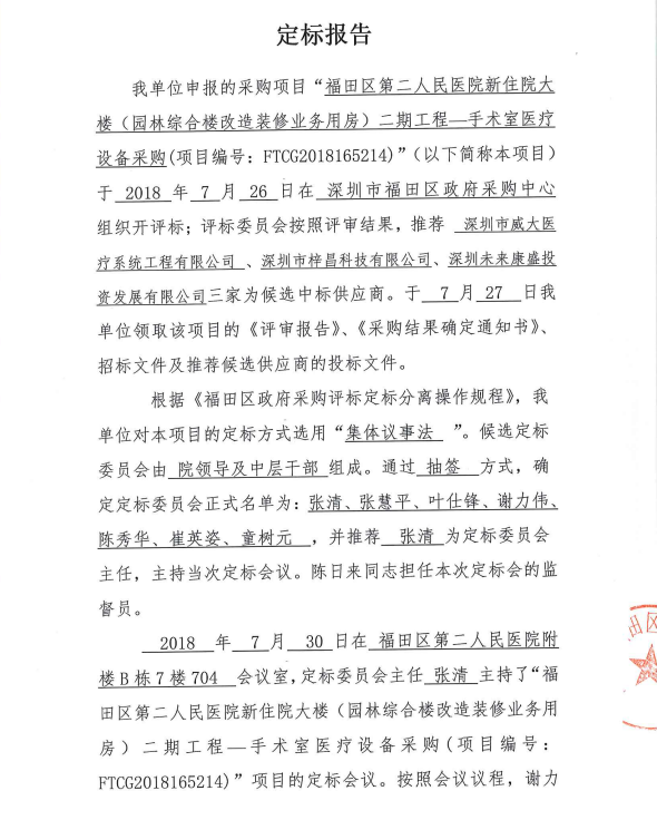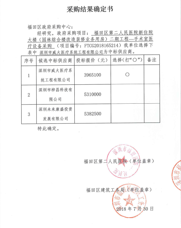 福田区第二人民医院新住院大楼二期工程—手术室医疗设备采购中标结果公告