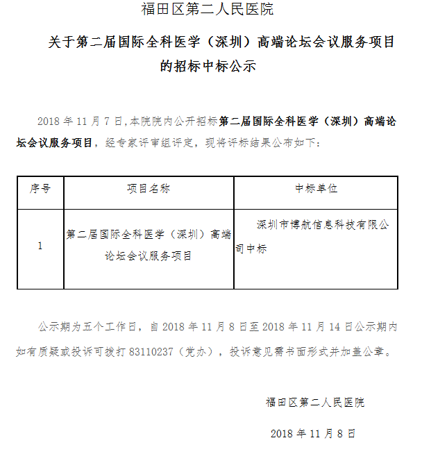 关于第二届国际全科医学(深圳)高端论坛会议服务项目的招标中标公示
