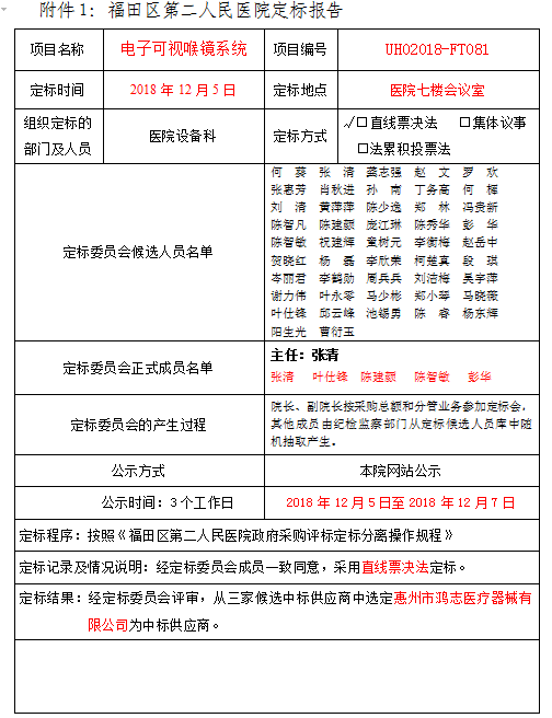 电子可视喉镜系统定标公告