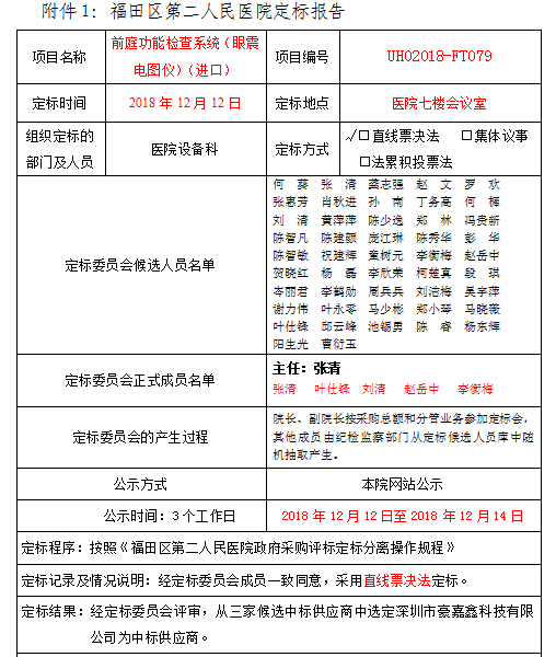 前庭功能检查系统(眼震电图仪)(进口)定标公告