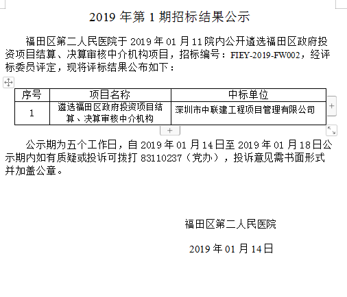 遴选政府投资审核中介机构招标结果公示