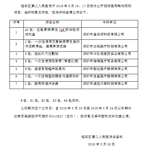 2019年第1期医用耗材招标结果公示