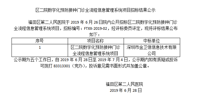 区二院数字化预防接种门诊全流程信息管理系统项目招标结果公示