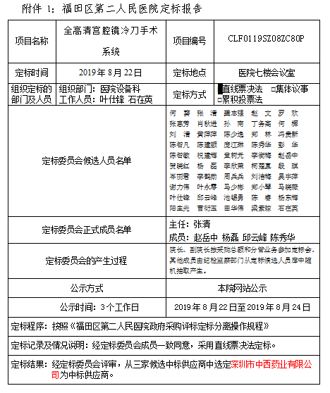 福田区第二人民医院全高清宫腔镜冷刀手术系统定标公示