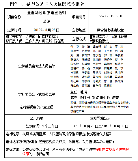 福田区第二人民医院全自动过敏原定量检测系统定标公示