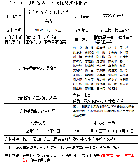 福田区第二人民医院全自动五分类血球分析系统定标公示