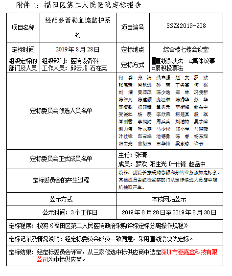 福田区第二人民医院经颅多普勒血流监护系统定标公示