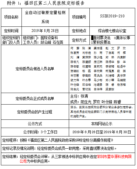 福田区第二人民医院全自动过敏原定量检测系统定标公示