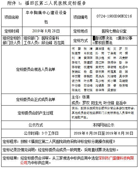 福田区第二人民医院卒中胸痛中心建设设备包定标公示