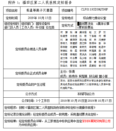 福田区第二人民医院低温等离子灭菌器定标公示