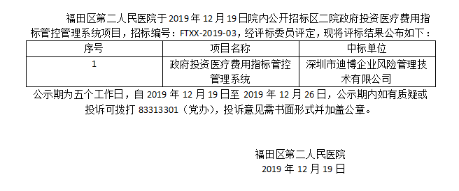 区二院政府投资&医疗费用指标管控管理系统项目招标结果公示