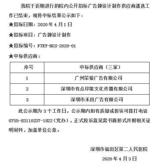 广告牌设计制作院内招标中标公示