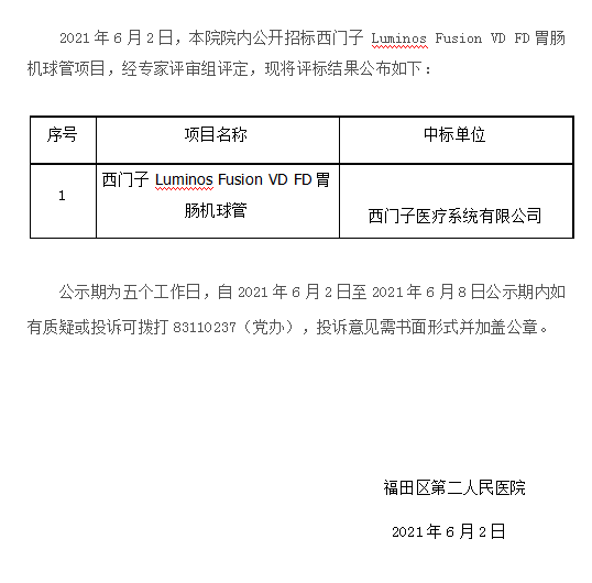 西门子 Luminos Fusion VD FD胃肠机球管中标公示