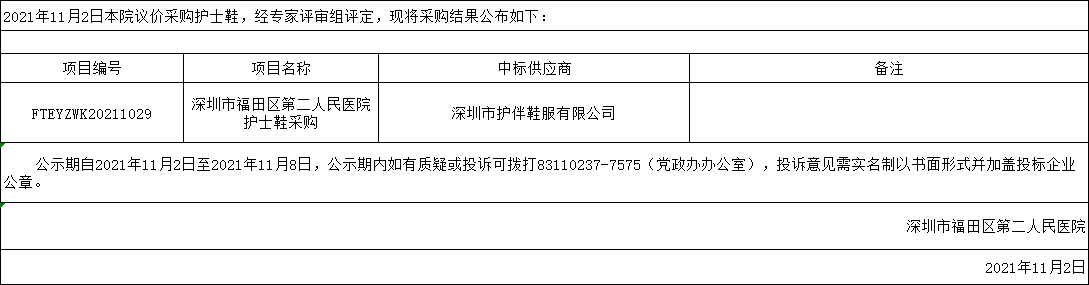 2021年护士鞋采购结果公示