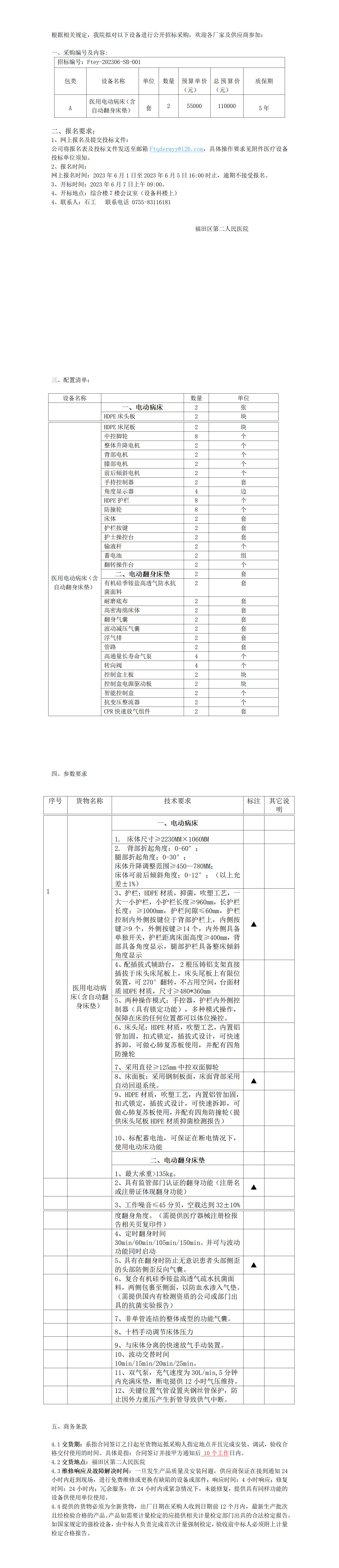 福田区第二人民医院重症医学科医用电动病床(含自动翻身床垫)采购公告