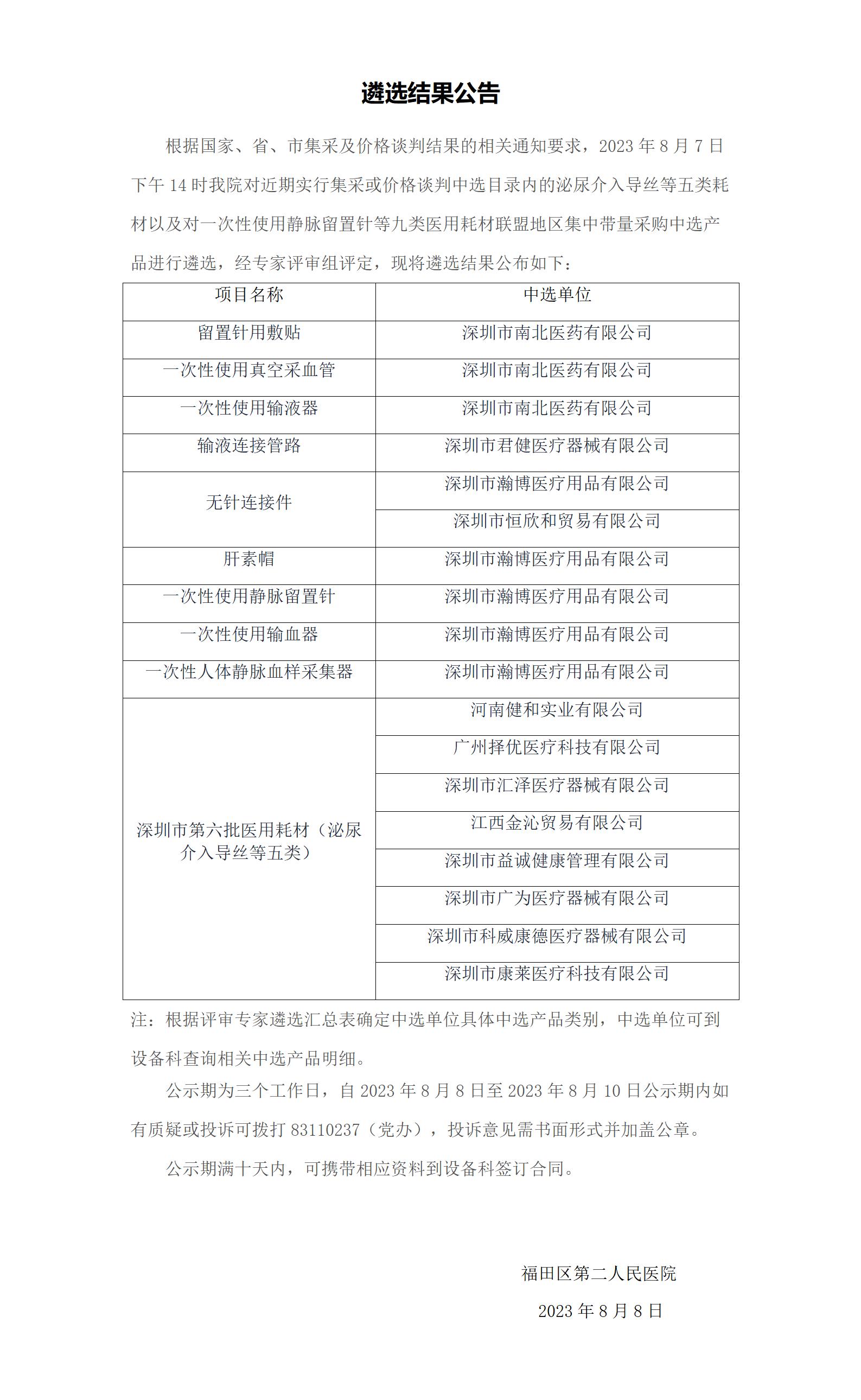 遴选结果公告