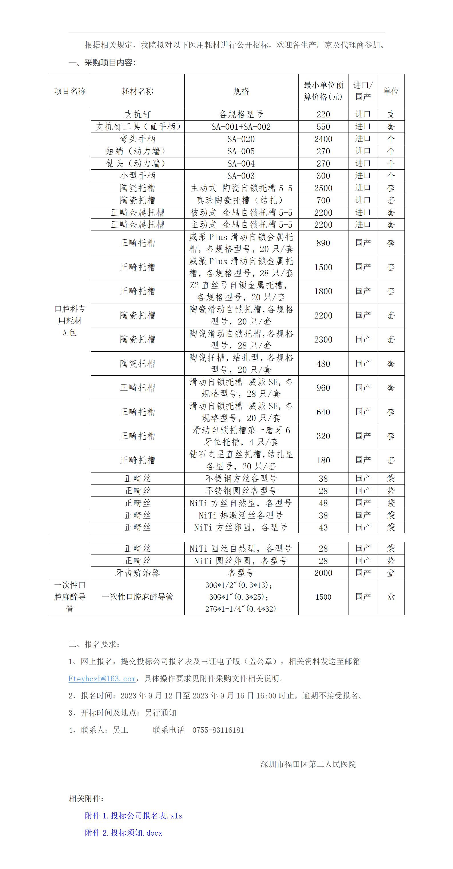 福田区第二人民医院口腔科医用耗材公开招标公告