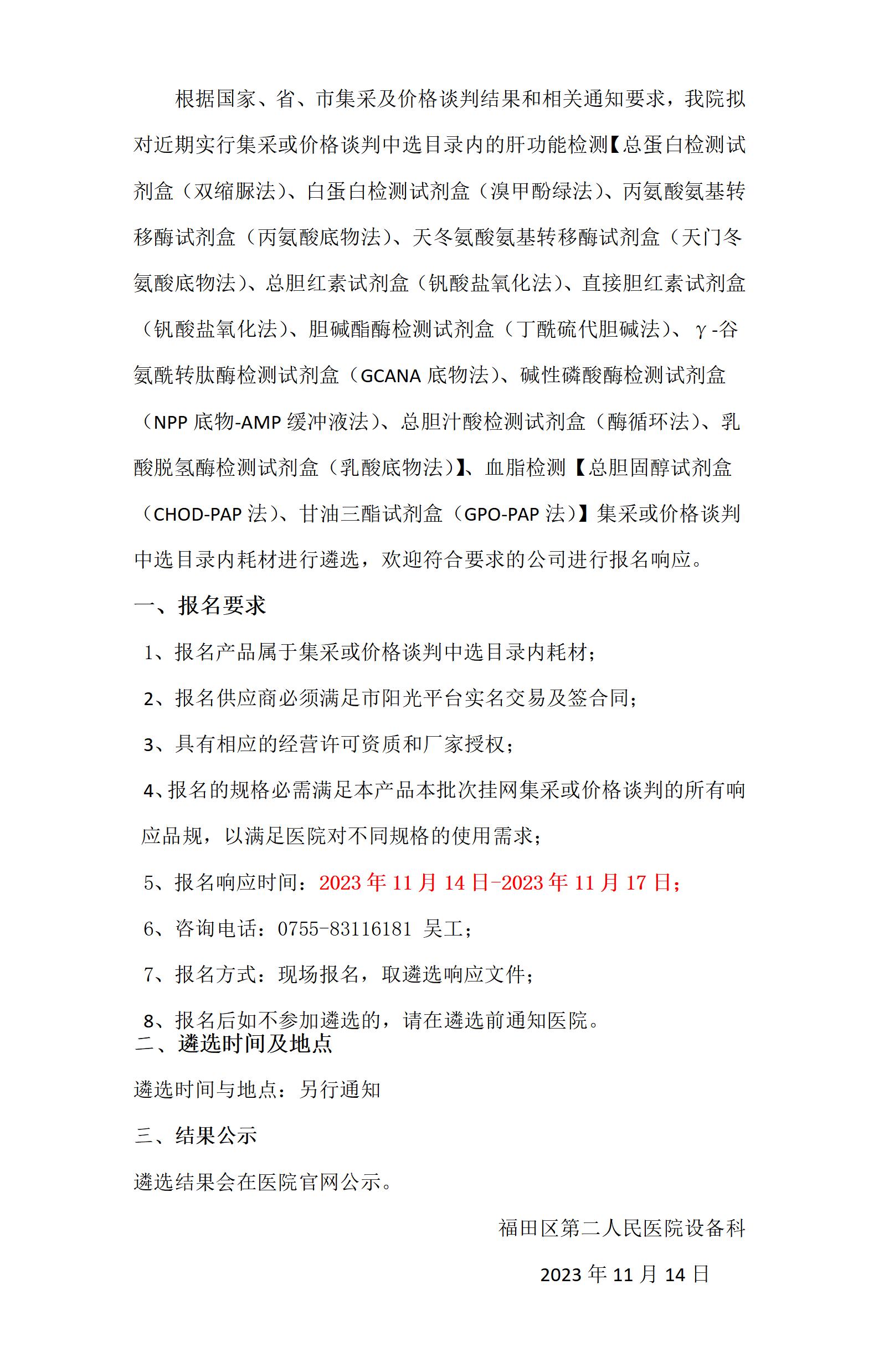 关于组织近期医用耗材集采和价格谈判结果品种的院内 遴选公告