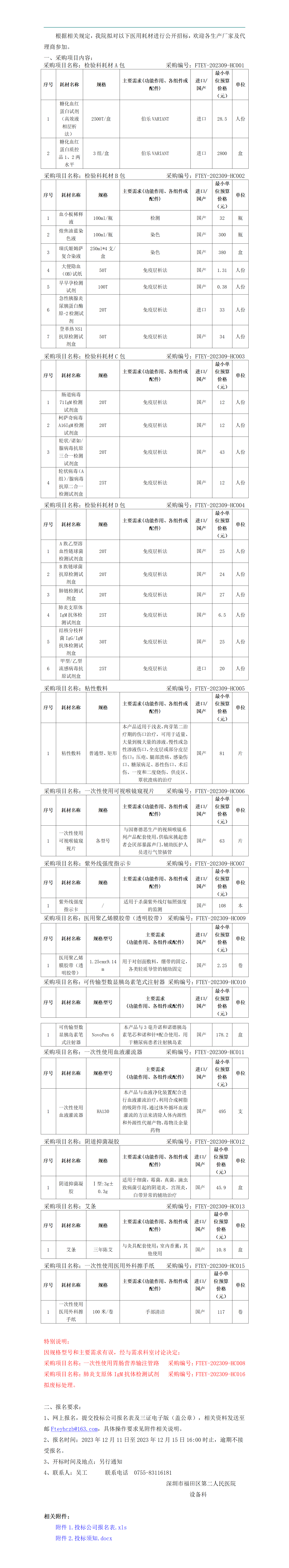 福田区第二人民医院2023年第9期医用耗材公开招标 二次公告