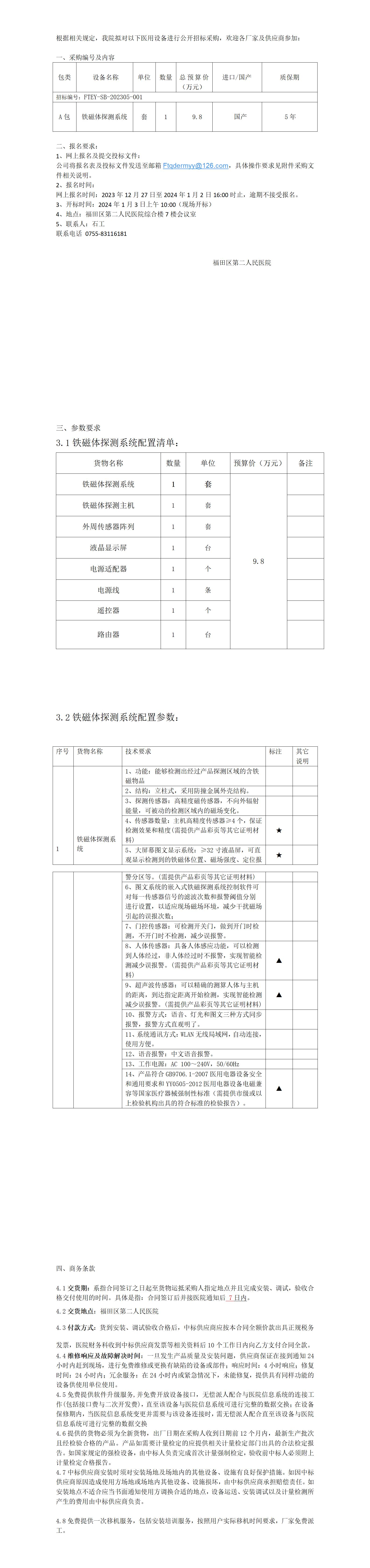 深圳市福田区第二人民医院2023年第5期铁磁体探测系统采购公告