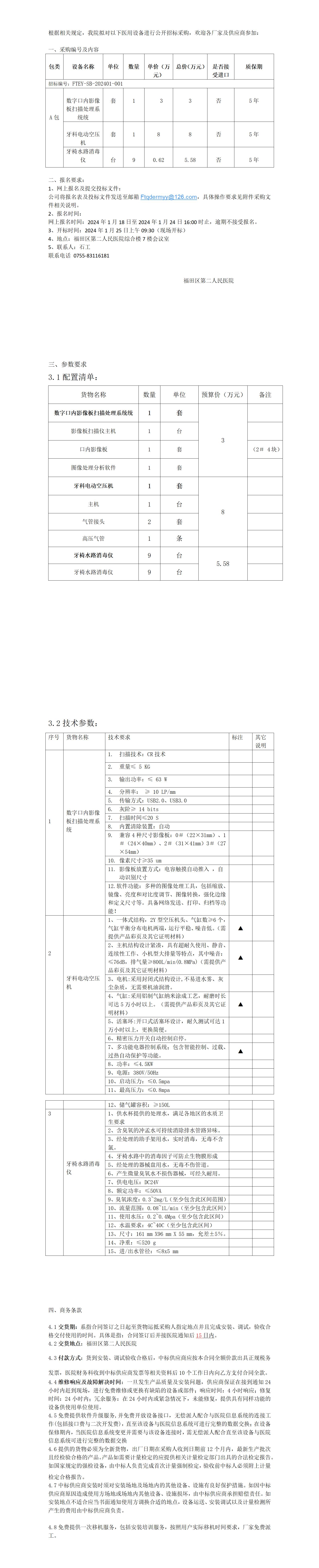 深圳市福田区第二人民医院2024年第1期口腔科医疗小设备采购公告