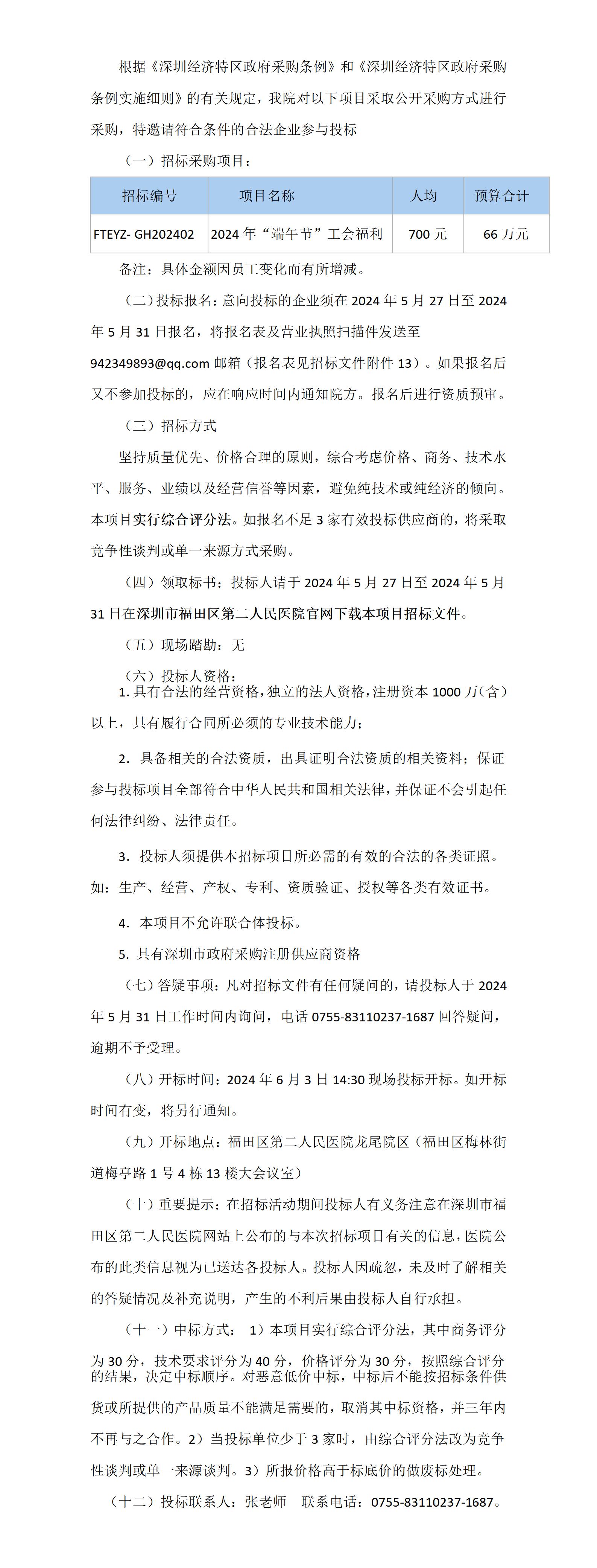 附件:深圳市福田区第二人民医院2024年端午节工会福利标书.docx