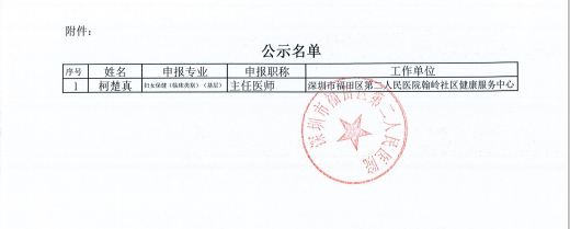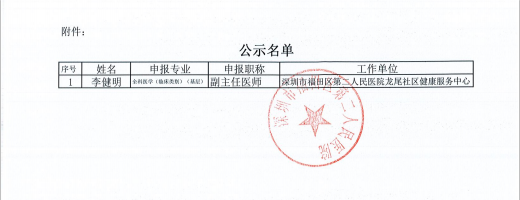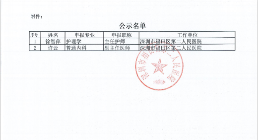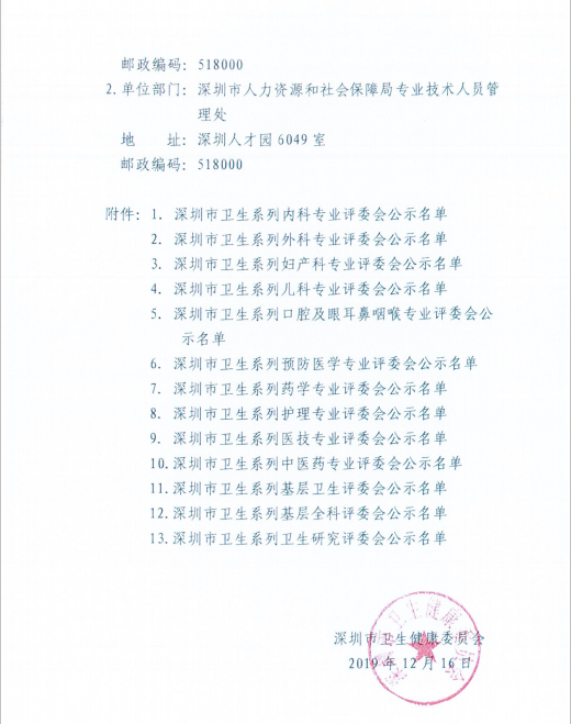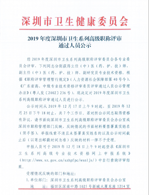 2019年度深圳市卫生系列高级职称评审通过人员公示