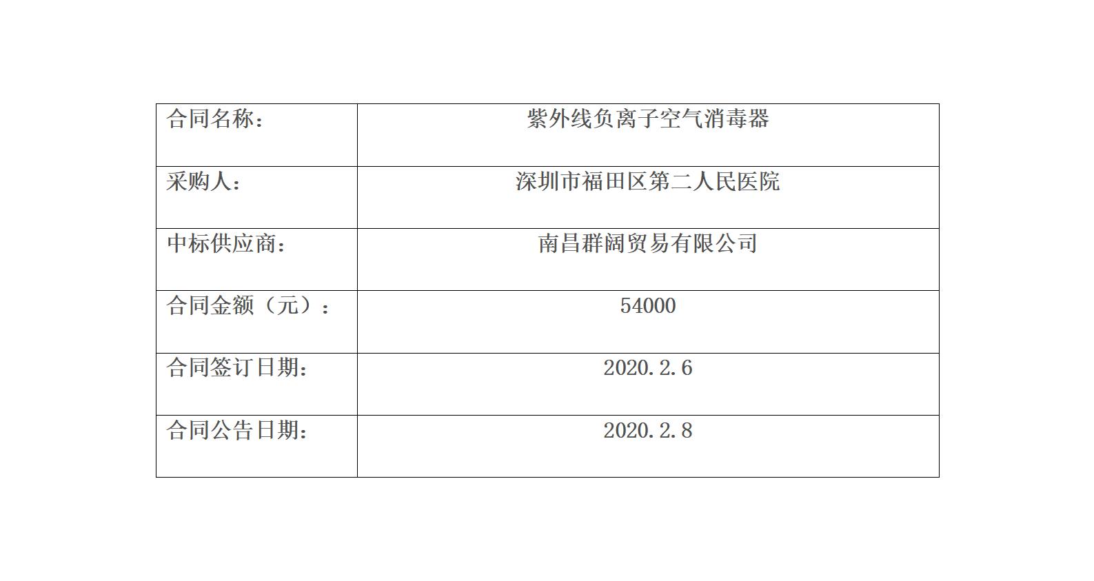 紫外线负离子空气消毒器合同公示